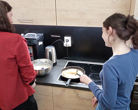 When we entered the school, the students looked at us with surprise and curiosity because two different volunteers had come to my school at the same time. All the students wanted to chat and play games🎲⚽💚 with them. Josi and Thea joined in our daily activities with the students and our teachers. After the morning circle and music activities🎹, we went to the kitchen to start making our dessert. While Josi and Thea were making the dessert, a few students helped them. Everyone at the school loved the dessert made by Josi and Thea. Thanks to my supervisor knowing German, Josi and Thea communicated well with Honza. Seeing my friends having fun at my school at the end of the day made me happy. 😊🎈🤩I would like all my volunteer friends to visit my school." (Bulut, Turkey)