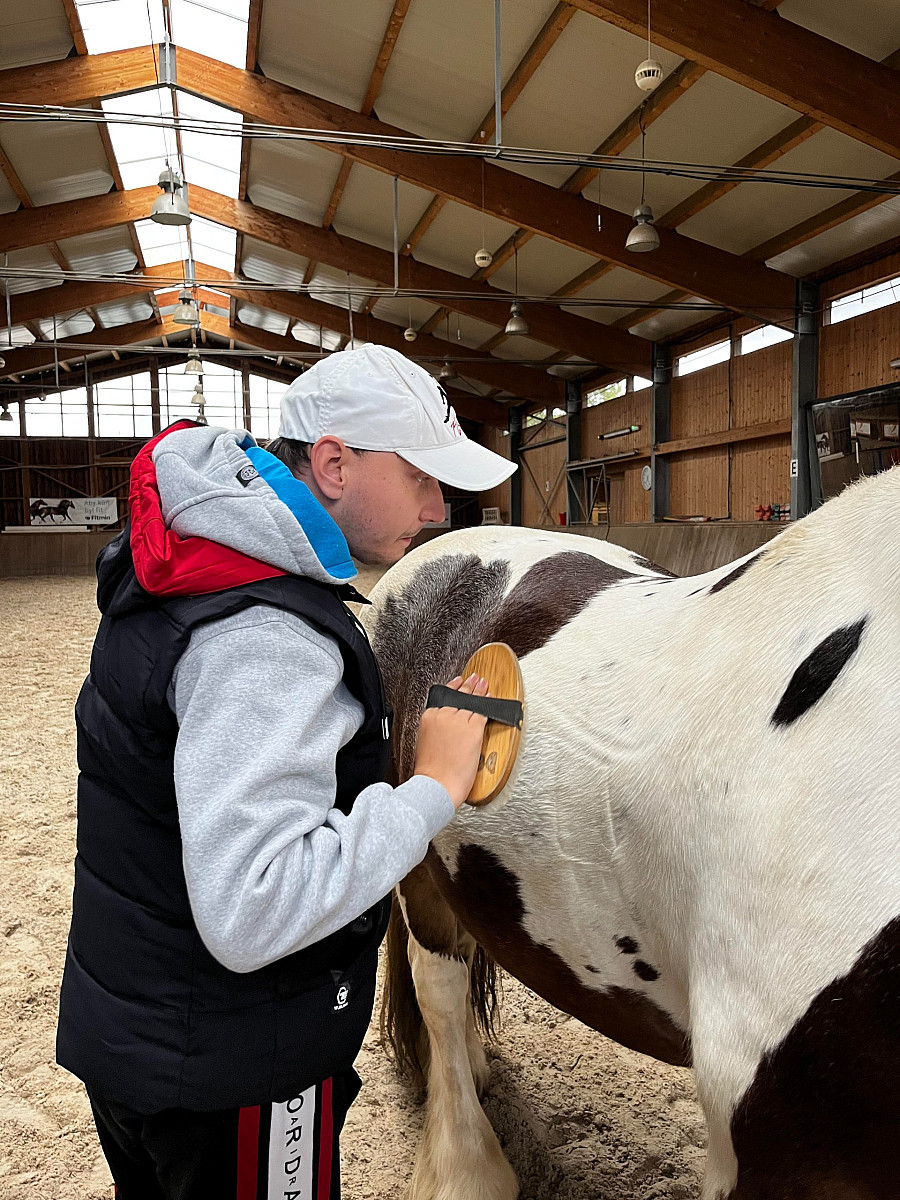 In my volunteering journey here, I work in a school where young adults with disabilities are located. My workspace is quite enjoyable. We do music therapy together every morning, and then I help with breakfast. When breakfast is completed, we sometimes do educational and informative activities such as handicrafts, painting, computers, reading books, hippotherapy, geography, cooking. If the weather is hot, we take a walk together in a wonderful green park and chat. Sometimes our teachers accompany these walks with their guitars. I am very pleased with the team I work with, my supervisor, coordinators and students. I get inspired by them and use my professionalism to work on a mini project for them. For this project, I took beautiful photographs of the students in their natural moments, they became great models for me. I am designing a desk calendar for them for 2024 with these photos. When my project is finished, they will not forget the year they spent with me.